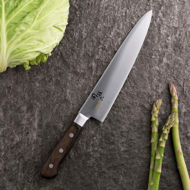 The Benifuji Chefs Knife is shaped in the traditional European style and is an all purpose knife suitable for chopping, shredding, cutting, slicing and cubing all meat, fish and vegetables.