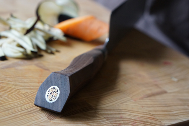 For the blade, we chose a 3-layer steel with an Aus-10 steel core, a renowned steel celebrated worldwide for its high performance. With a hardness rating of 60 HRC, it allows for easy sharpening when needed while being sufficiently robust for tasks where hardness is critical. Furthermore, the steel undergoes a vacuum treatment to enhance its durability. The edge is sharpened to 15° on each side, ensuring the ease of restoring sharpness when necessary.