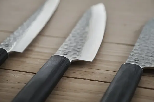 Blade made of 3 layers of Sanmai steel and core of AUS8 Japanese stainless steel created for knife making.