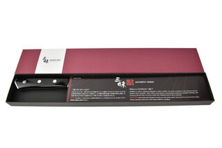 The knives in the Mcusta Zanmai Classic Molybdenum series are made of AUS-8A monosteel . AUS-8A has a Rockwell hardness of 59 HRC +/- 1, making it very easy to sharpen and extremely robust. These fully matte-polished, sharp, and durable knives feature a very slim blade geometry that allows for delicate cutting. The high-quality handles are made of robust, black pakkawood, and the stainless steel ferrule fits comfortably in the fingertips when making rocking cuts. An entry-level model in the world of Japanese chef's knives with excellent value for money.