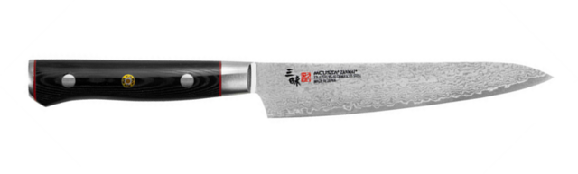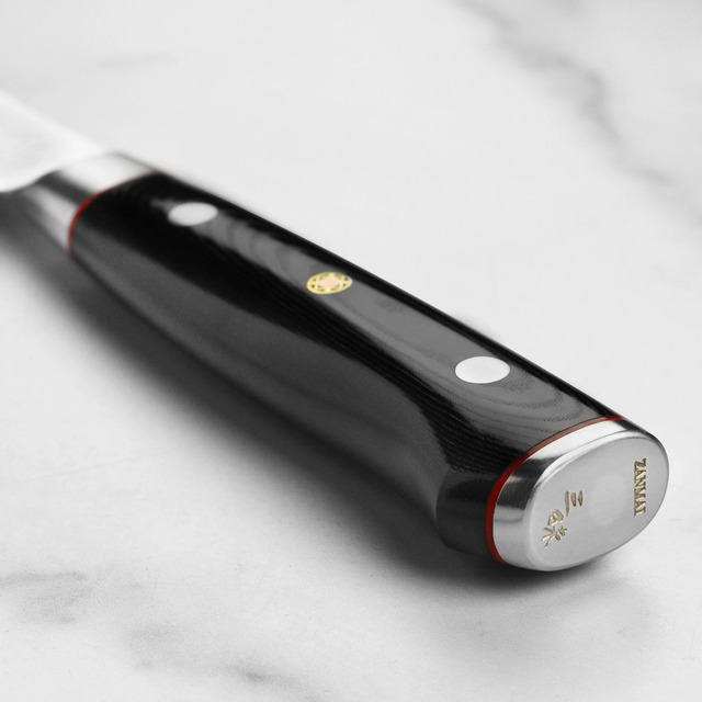 A universal knife from the Japanese brand Mcusta Zanmai is a versatile tool that allows for peeling both vegetables and fruits. Thanks to its widened blade, the knife is also suitable for cutting larger products and is excellent for chopping or mincing herbs. The handle is made of black micarta, a highly regarded material used in knife production. Micarta is a composite made from linen, canvas, and carbon fiber, known for its high resistance to mechanical damage, high temperatures, and moisture.
